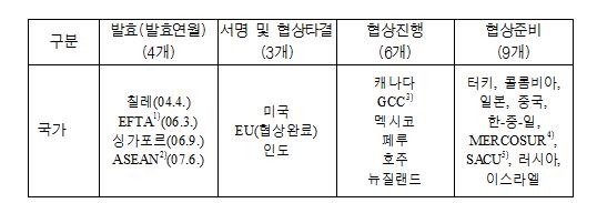 | <표= 현재 정부가 추진 중이거나 완료된 FTA는 무려 22건에 이른다> | ||