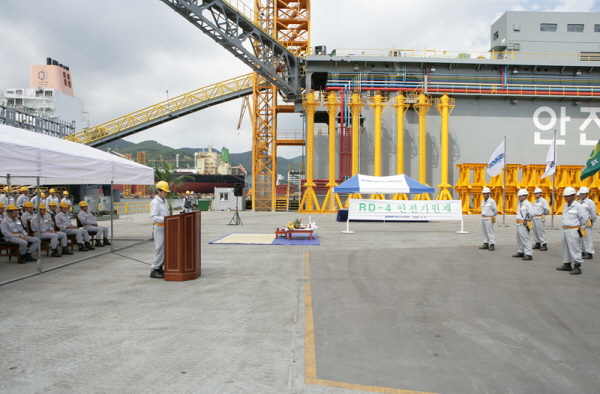 9일 대우조선해양은 남상태 사장과 최창식 노조위원장 등 회사관계자 90여명이 참석한 가운데 해상 플로팅 독 준공식을 가졌다.