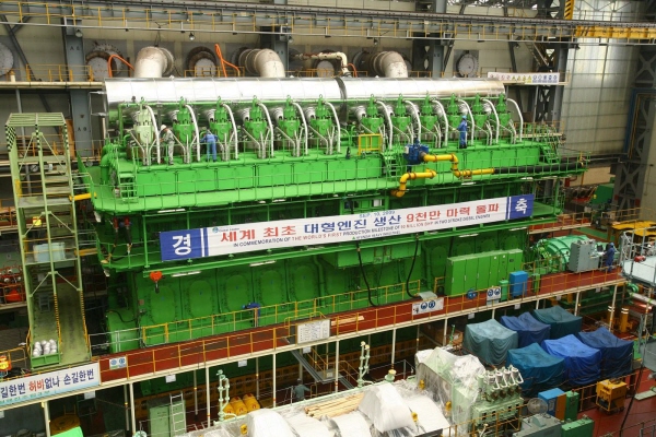 <현대중공업이 생산한 9천만 마력째 대형엔진의 시운전 장면> |