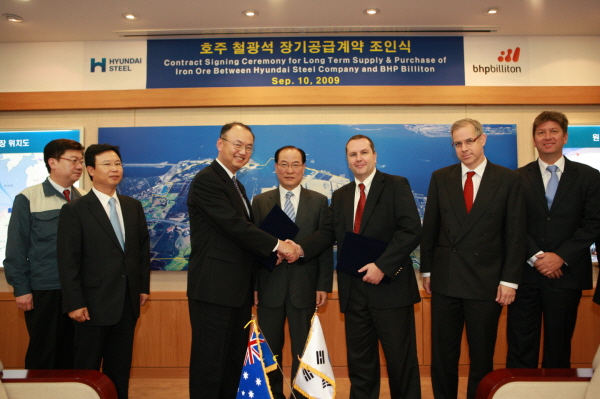 | <10일 현대제철과 호주의 BHP빌리튼 사가 2009년부터 8년간 총 2200만톤 규모의 철광석 공급 계약을 체결했다.> | ||