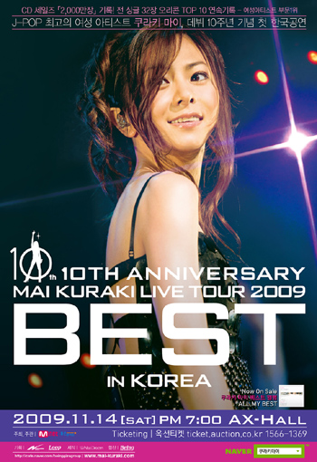 이번 쿠라키마이 첫 내한 공연 '10th Anniversary LIVE TOUR 2009 【BEST】 IN KOREA'은 오는 11월 14일 광장동 악스홀에서 개최되며 9월 16일, 데뷔 10주년 베스트 앨범 'All MY BEST' 한국 발매와 동시에 티켓 판매를 실시한다.