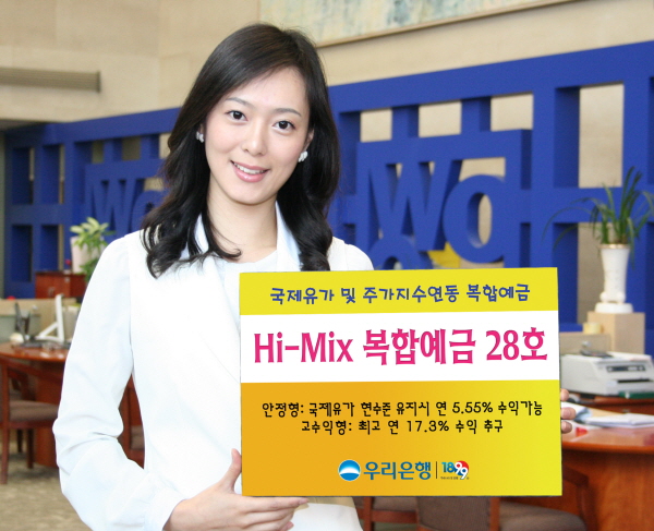 [프라임경제] 우리은행은 원금은 보장하면서 국제유가와 국내 증시에 투자해 고수익을 추구하는 신상품 하이-믹스(Hi-Mix) 복합예금 28호를 다음달 7일까지 판매한다고 밝혔다.