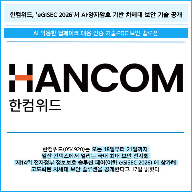 [카드] 한컴위드, 'eGISEC 2026'서 AI·양자암호 기반 차세대 보안 기술 공개
