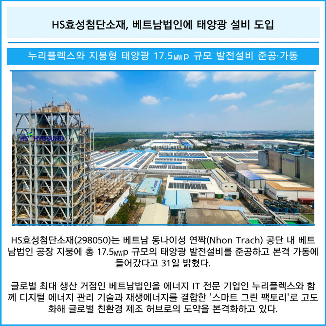[카드] HS효성첨단소재, 베트남법인에 태양광 설비 도입