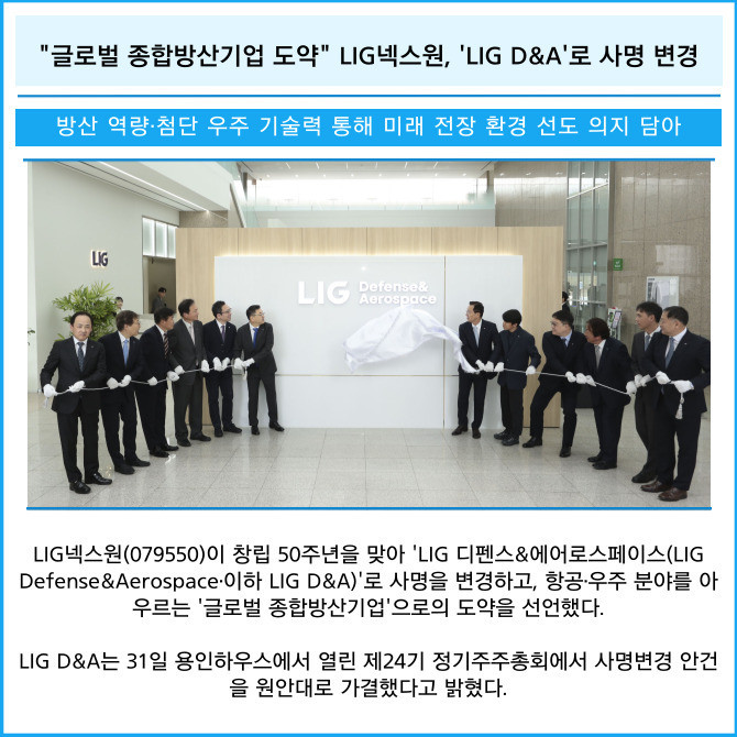[카드] "글로벌 종합방산기업 도약" LIG넥스원, 'LIG D&A'로 사명 변경