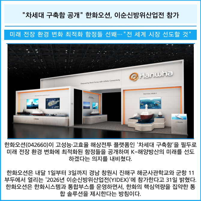 [카드] "차세대 구축함 공개" 한화오션, 이순신방위산업전 참가