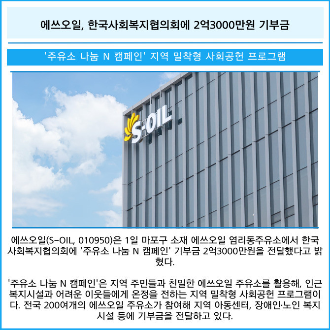 [카드] 에쓰오일, 한국사회복지협의회에 2억3000만원 기부금
