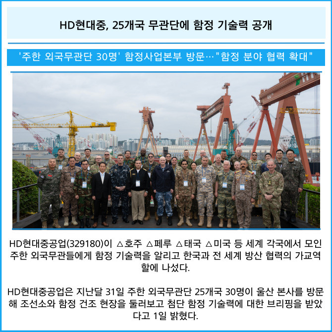 [카드] HD현대중, 25개국 무관단에 함정 기술력 공개