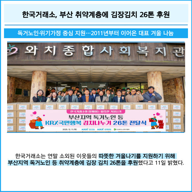 [카드] 한국거래소, 부산 취약계층에 김장김치 26톤 후원
