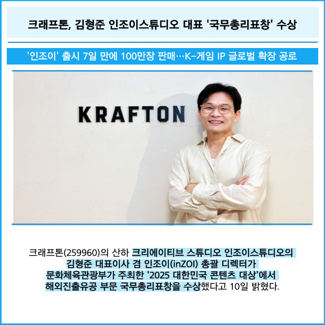 [카드] 크래프톤, 김형준 인조이스튜디오 대표 '국무총리표창' 수상