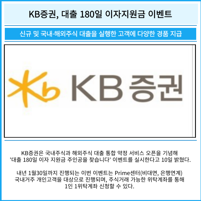[카드] KB증권, 대출 180일 이자지원금 이벤트
