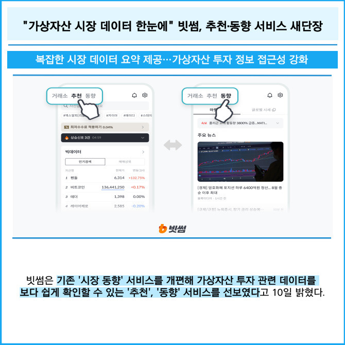 [카드] "가상자산 시장 데이터 한눈에" 빗썸, 추천·동향 서비스 새단장