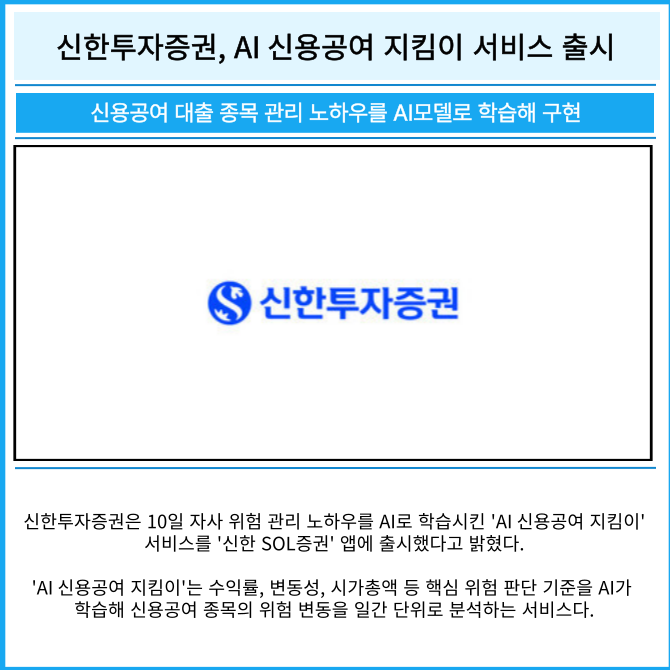 [카드] 신한투자증권, AI 신용공여 지킴이 서비스 출시