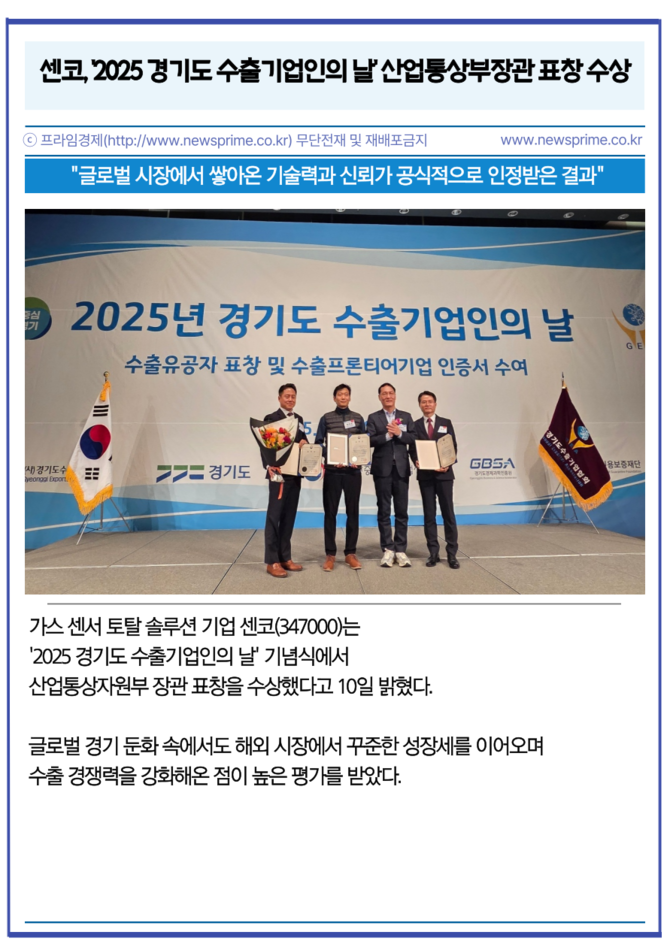 [카드] 센코, '2025 경기도 수출기업인의 날' 산업통상부장관 표창 수상
