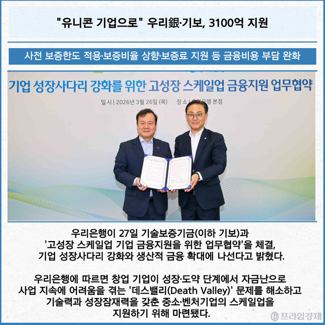 [카드] "유니콘 기업으로" 우리銀·기보, 3100억 지원