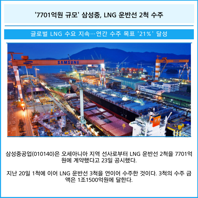 [카드] '7701억원 규모' 삼성중, LNG 운반선 2척 수주