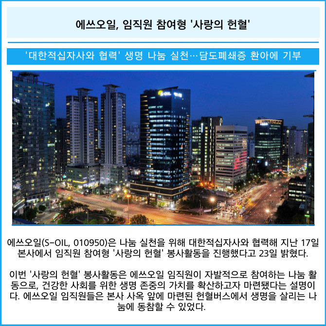 [카드] 에쓰오일, 임직원 참여형 '사랑의 헌혈'