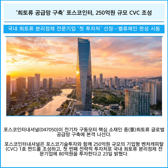[카드] '희토류 공급망 구축' 포스코인터, 250억원 규모 CVC 조성