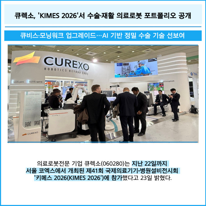 [카드] 큐렉소, 'KIMES 2026'서 수술·재활 의료로봇 포트폴리오 공개