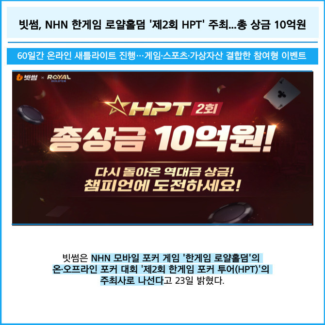 [카드] 빗썸, NHN 한게임 로얄홀덤 '제2회 HPT' 주최...총 상금 10억원