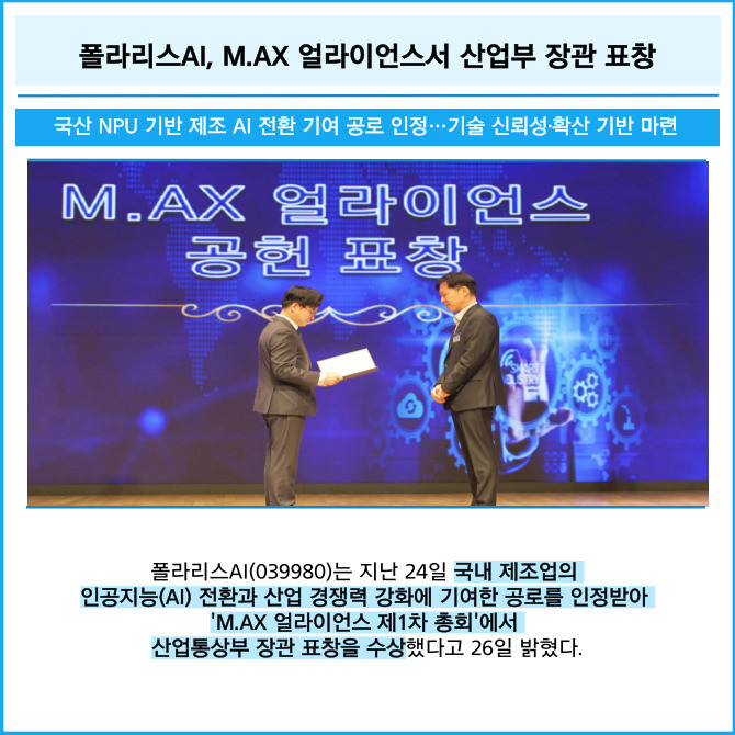 [카드] 폴라리스AI, M.AX 얼라이언스서 산업부 장관 표창