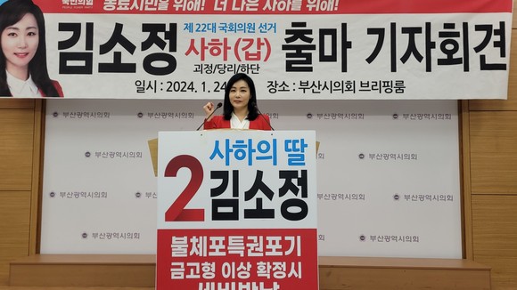 국힘 김소정 '사하의 딸' 부산 사하(갑) 총선 출마 선언