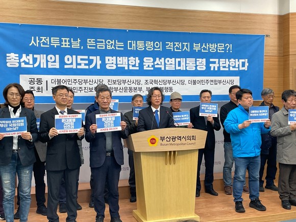 부산 야당·시민단체 "총선 사전투표일 낙동강 벨트 방문은 노골적인 선거개입" 규탄