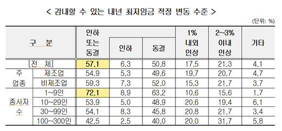 중소기업 50.8% "내년 최저임금 동결해야"