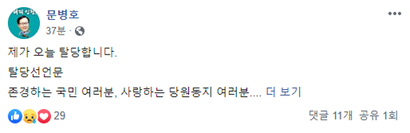 문병호 "통합·개혁의 길 위해 탈당 선언"