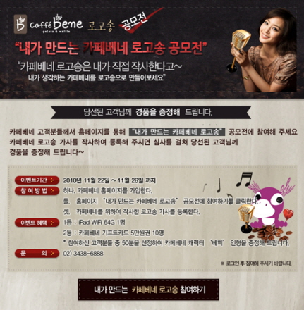 카페베네, 고객이 만든 가사로 새 로고송 만든다