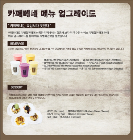 카페베네 16개 신 메뉴로 선택의 폭 넓힌다
