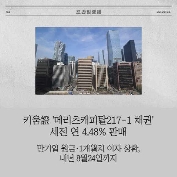 [카드] 키움證 '메리츠캐피탈217-1 채권' 세전 연 4.48% 판매