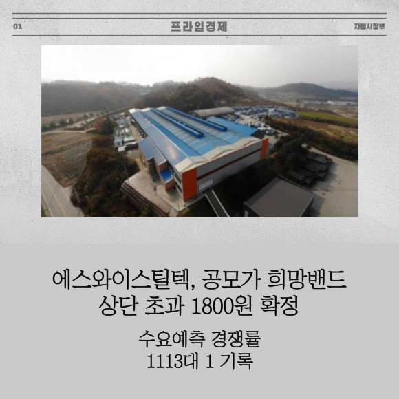 [카드] 에스와이스틸텍, 공모가 희망밴드 상단 초과 1800원 확정