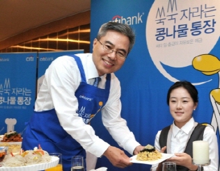 씨티은행장, '콩나물 통장' 대성황 자축 행원들에게 요리 대접