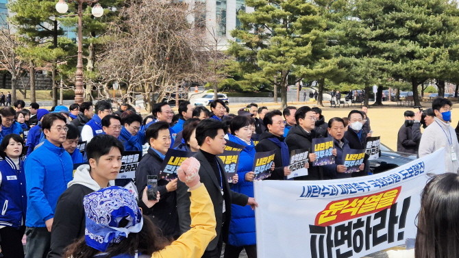 헌재 달려간 민주당 의원들 '계란 투척' 봉변