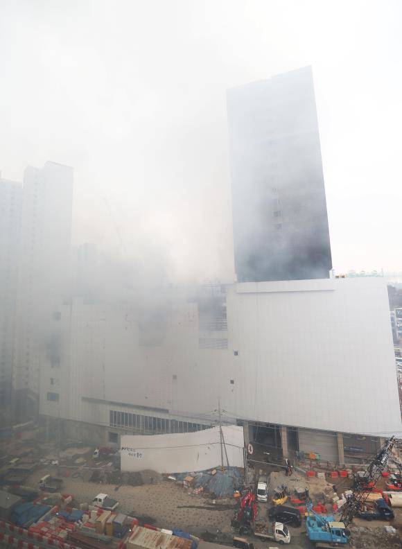 용인 성복동 롯데몰 신축 공사현장 화재…대응 2단계 발령