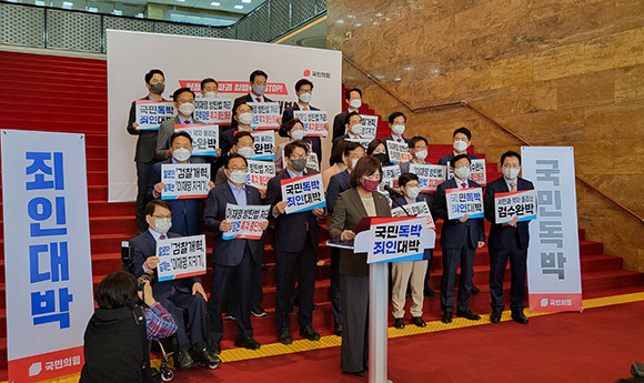 반면, 국민의힘은 이날 국회 로텐더홀 입구에서 검찰 수사권·기소권 분리 법안 강행처리 저지를 위한 연좌농성에 들어갔다고 발표했다.