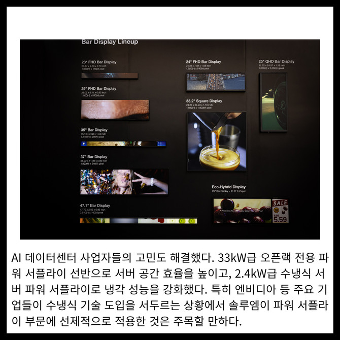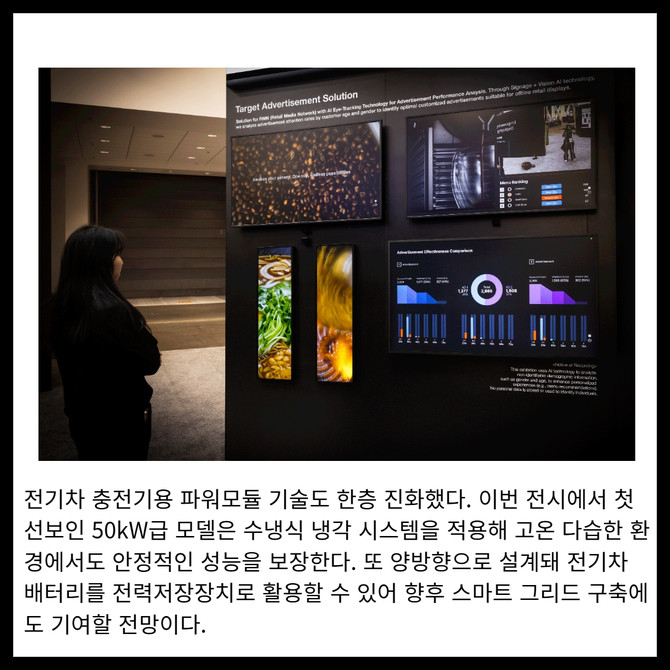 또한, 솔루엠은 전기차 충전기용 파워모듈과 AI 데이터센터를 위한 새로운 기술을 소개했다. 50kW급 수냉식 전기차 충전기와 33kW급 오픈랙 전용 파워 서플라이, 2.4kW 수냉식 서버 파워 서플라이를 통해 성능과 효율성을 높였다. 특히, 수냉식 기술을 적용한 파워 서플라이가 업계의 관심을 모았다.
