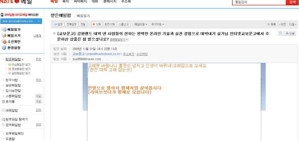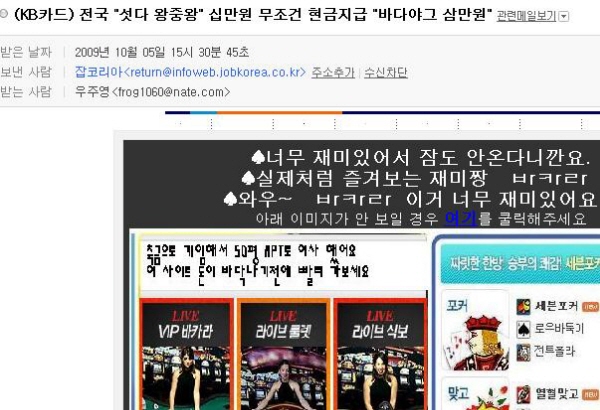 하지만 담긴 글은 정상적인 교보문고 인터넷서점에서 보낼 법한 것과 동떨어진 내용. 강원랜드 대박 기법 운운하는 내용이 교보문고 명의로 발송된 것.