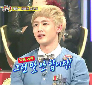 [지난 1일 강심장에 출연한 닉쿤과 유민, 닉쿤의 이상형이란 말에 유민이 행복해 하고 있다. 유민이 이상형인 이유는 단지 연상녀라고 밝힌 모습]