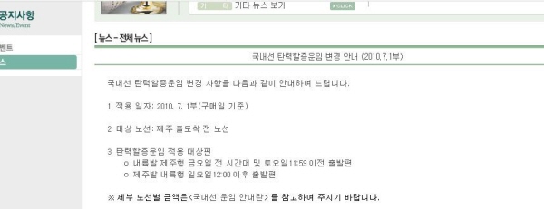 | <사진=대한항공 홈페이지에 공지된 탄력인상제 내용> |