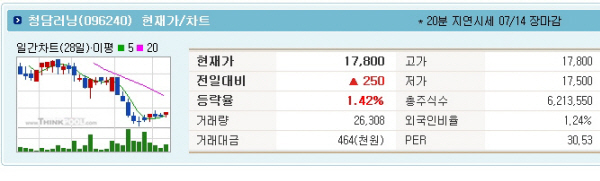 청담러닝은 오프라인 학원업과 함께 온라인 교육 콘텐츠를 갖고 있는 영어교육 전문업체다. 외국어고 입시 제도 변화와 EBS 수능연계 등의 조치로 근래 교육관련주는 부정적 영향을 받아오면서 황금알을 낳던 시대는 끝난 게 아니냐는 우려를 받고 있다. 아울러 청담러닝은 최근 큰 가격 하락을 겪으면서 투자자들의 우려를 사기도 했다. 시장에서는 기관이 물량을 털어내는 것으로 하락 사유를 보고 있다.