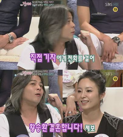 지난 6일 방송된 SBS '스타부부쇼 자기야'에 출연한 황승환은 "아내와 결혼하기 위해 기자에게 직접 전화를 걸어 제보했다"고 말했다.