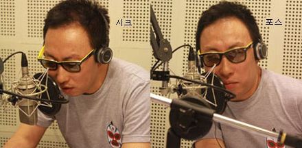 세 컷의 사진은 '시크 포스 여유' 세 가지 표정을 나타내고 있다. 하지만 '쓰리디 입체 안경 스멜'이라는 글에서 고가의 안경이 아닌 저렴한 안경처럼 느껴졌다.