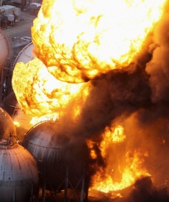 11일 오후 일본 동북지방의 해저에서 발생한 규모 8.9의 초대형 강진 여파로 일본 지바현 이치하라 정유시설이 화염에 휩싸였다. 사진은 ‘NHK’ 뉴스 캡처.