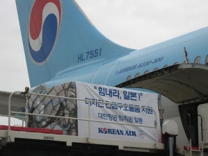 앞서 대한항공은 일본 피해 지역에 생수 5000박스와 담요 2000장을 전달한 데 이어 지난달 18일에는 한진그룹이 일본 지진 피해 복구성금 7억원을 대한적십자사에 기탁한바 있다.