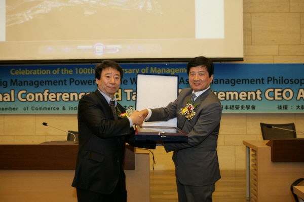 한국경영사학회 김신 회장은 “테일러 과학적관리법에 동아시아경영사상을 접목해 한국형경영모델을 개발해 글로벌금융위기를 극복하고 일류기업으로 성장시킨 창조와 혁신경영에 대한 공로가 커 이상을 수여했다”고 밝혔다.