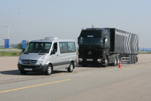 다임러 트럭은 메르세데스-벤츠 대형트럭 ‘악트로스’ 고급형 모델에 액티브 브레이크 어시스트 2 시스템을 장착할 예정이다.
