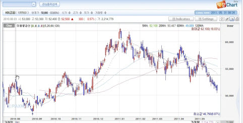| 오는 9월까지 국민은행이 자사주를 처리해야 하는 상황에서 주가 흐름 때문에 손실 우려가 나오고 있다. 주식매수청구권 행사에 따른 자사주 취득분을 3년 내 처리해야 하는데 그 시한이 다가오고 있지만 손해없이 팔 가격이 형성되지 못하고 있기 때문. 2010년말과 2011년초에 자사주 매각의 절차를 매듭지었어야 하는 게 아니냐는 해석이 나오고 있다. | ||