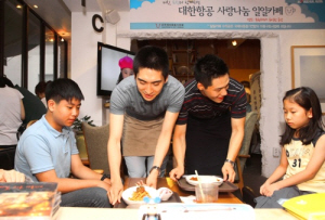 | 대한항공 소속 이승훈, 모태범 선수는 '사랑나눔 일일카페' 참석 등의 활동으로 동계올림픽 유치 성공을 위해 앞장서고 있다. | ||